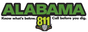 Third-party excavation is the leading cause of underground pipeline damage. This damage is frequently caused by the excavator’s failure to request the location of utility facilities within construction limits. State law requires anyone performing excavation activity to call Alabama 811 at least 48 hours before digging or excavating. Before you start any excavation activity on your property, contact Alabama 811 at 811 or 1 (800) 292-8525. Member underground facility operators will mark the location of their lines at no cost to you.